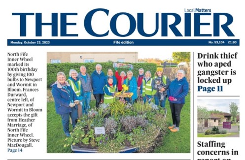 As part of Inner Wheel’s centenary year, the club planted 100 bulbs in each of the 6 villages and towns where our members live for the Inner Wheel centenary. A double winner when we got great publicity in the Fife Edition of The Courier – our article appearted on the front page! Well done girls!