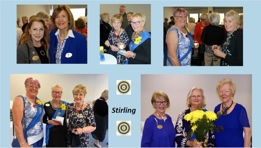 The first Club visit for District Chairman Lynda Taylor was to the Stirling Club. Lynda is pictured with President Jen McCrea and a second photo with Stirling members.