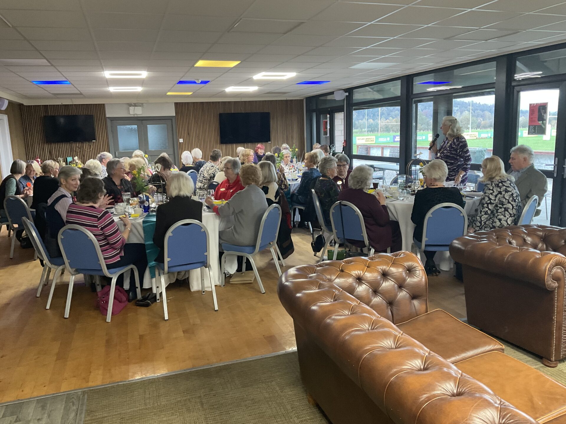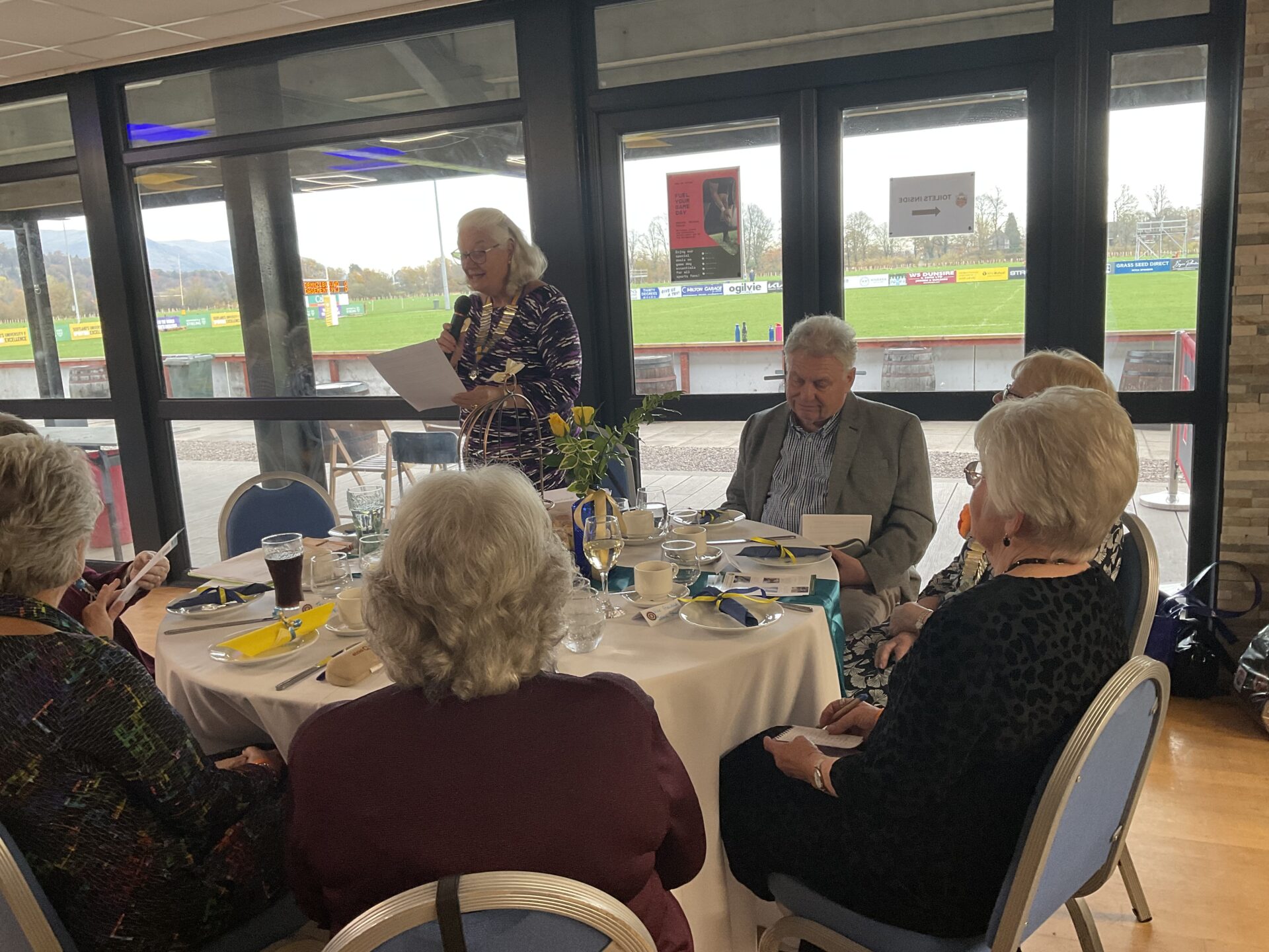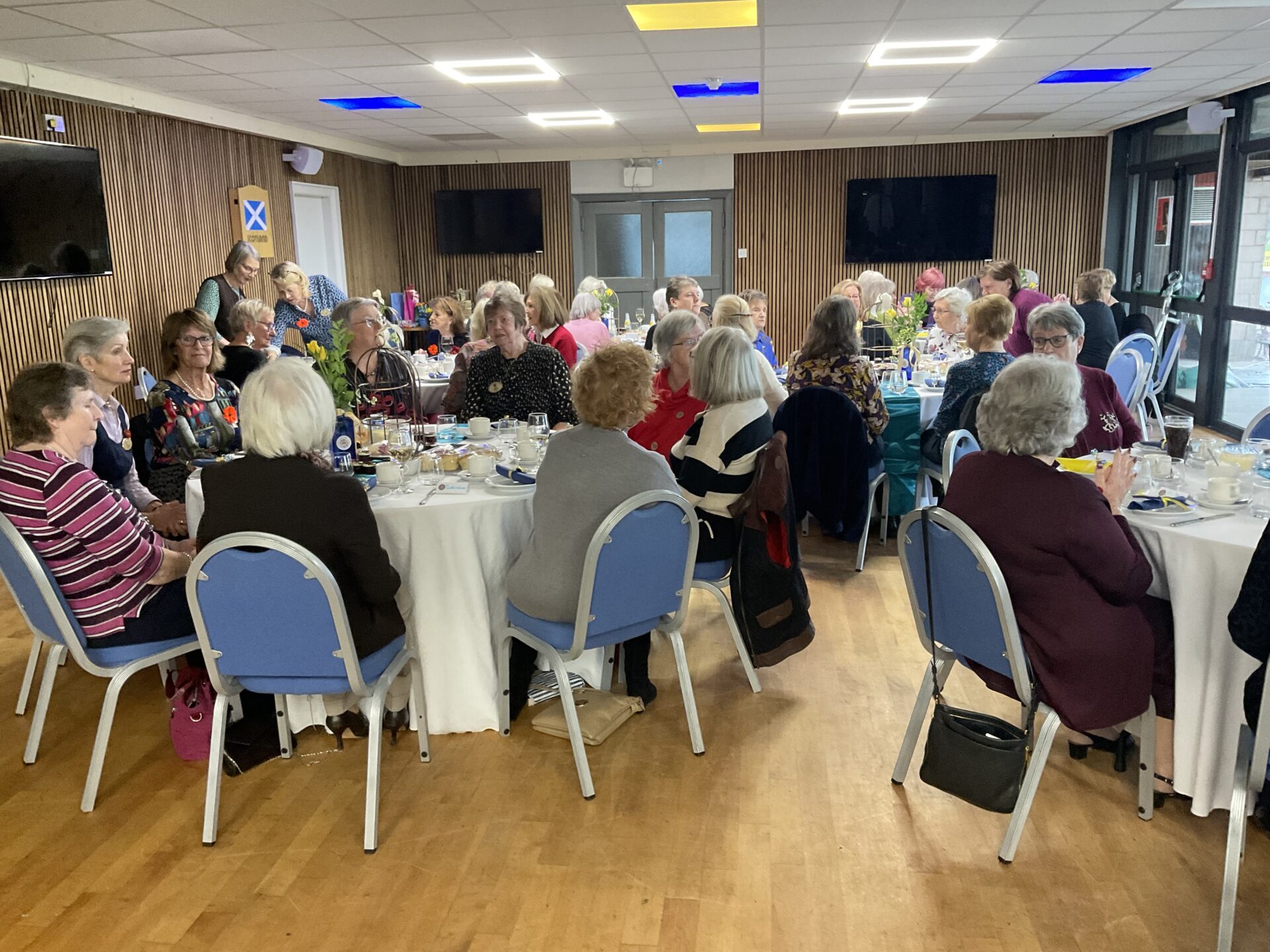 President Jen McCrea welcomed District Chairman Lynda Taylor, members of the District Executivevisitors from many neighbouring clubs and fellow Stirling members to their 77th Birthday Tea. A total of 52 were in attendance to enjoy a very interesting presentation by Paul Nelson from Dunblane Development Trust. A delicious afternoon tea followed. The event was held at Stirling Rugby Club – a new venue for the club. Birthday cake and raffles finished off an excellent afternoon of friendship – enjoyed by all.