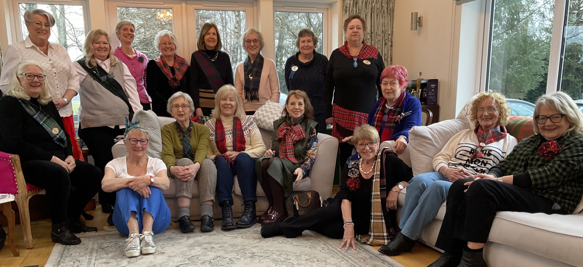 A Burns Coffee morning was held in Marjorie Duncan’s home today. Lots of bits of tartan, amazing food, haggis pizza, haggis bonbons and shortbread were amongst the fare. Some Scottish poetry was recited and then a few tales of our descendants and how they ended up in Scotland.  A really good morning out full of fun and friendship.