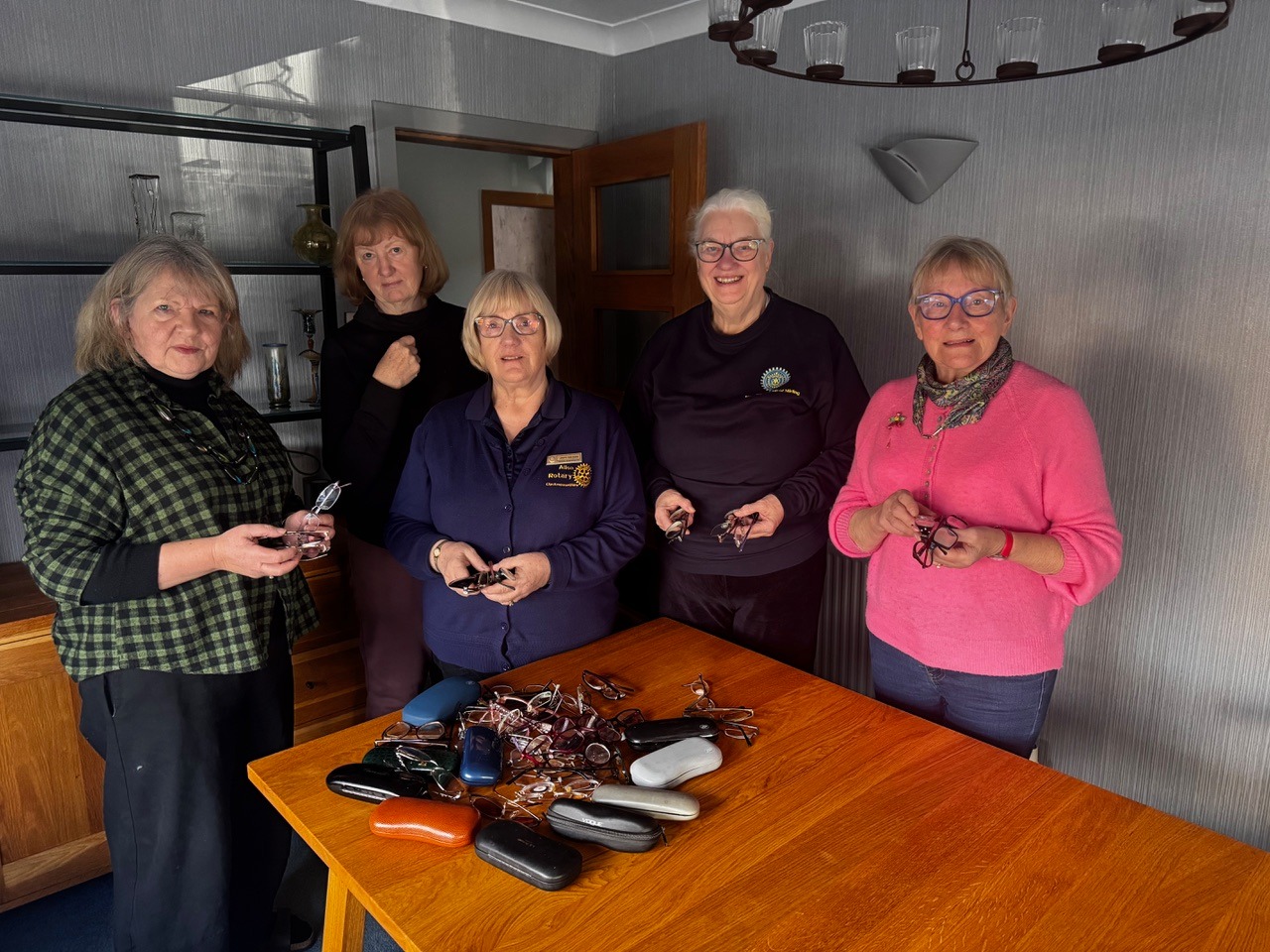 Previous collections were given to local opticians.  Seen here left to right: Linda (our ISO Officer) Lynsey Spowage (Alloa Rotary) Jinty Wilson (Alloa Rotary) President Jen, Marjory Duncan.( Past President)